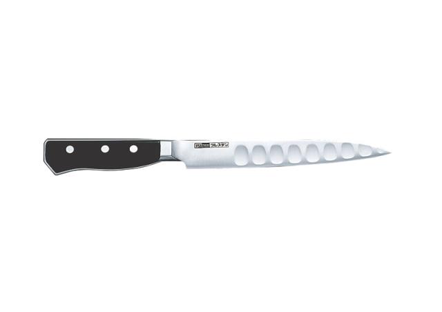 へこみの部分に空気が入ることにより、刃離れの良さと、軽い切れ味を実現しました。