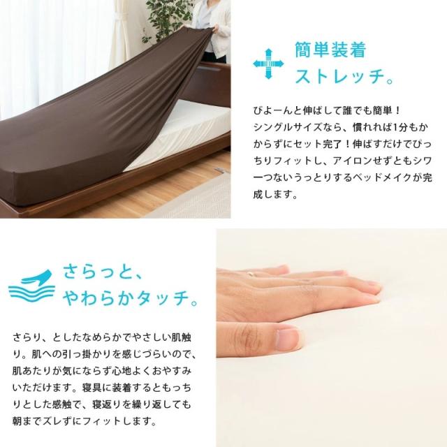【厚み30cm対応タイプ】のびて、クイック。生地全体が伸びてベッドマットレスにキレイにフィット!手軽にシワ知らずのホテルスタイルが完成♪