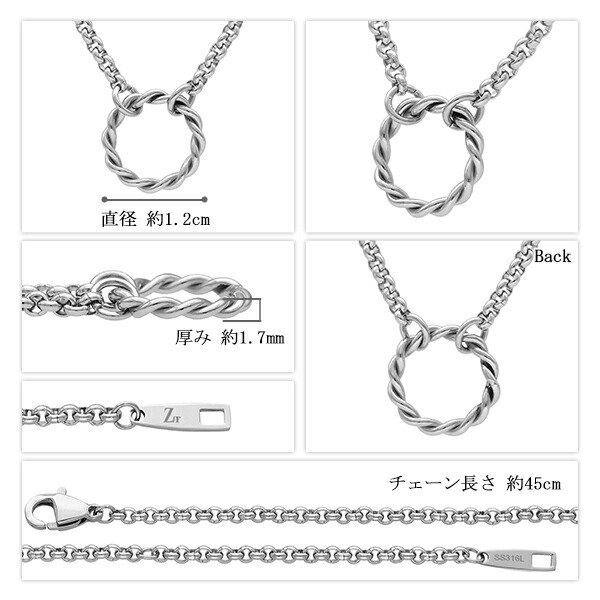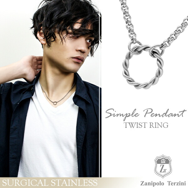 ザニポロタルツィーニ サージカルステンレス ツイストリング ネックレス シンプル メンズネックレス ステンレスネックレス アクセサリー ブランド