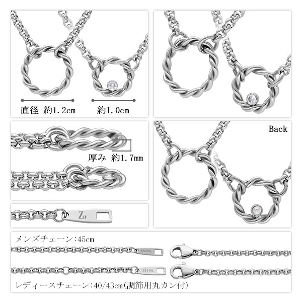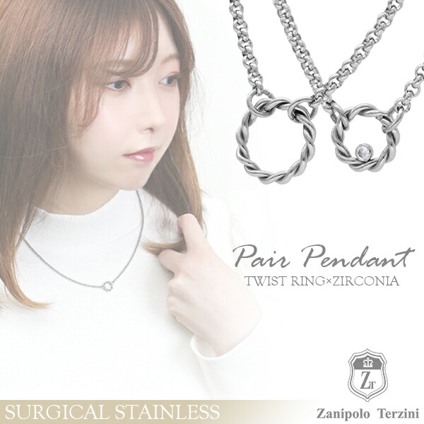 【Zanipolo Terzini】 ツイスト リング サージカルステンレス ペアネックレス
