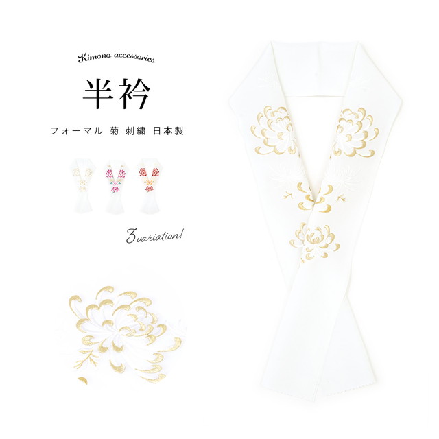 半襟 刺繍 振袖 成人式 半衿 乱菊 古典 レトロ 菊 結婚式 フォーマル 縮緬 着物 和装小物 日本製 メール便