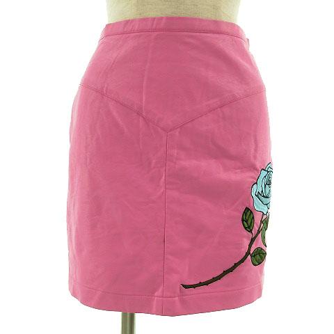【中古】@bubblestokyo スカート ひざ丈 合成皮革 フェイクレザー 薔薇刺繍 ストレッチ ピンク レディース