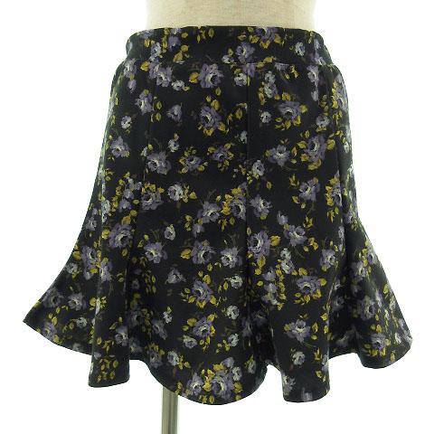 【中古】ザラ トラファルック ZARA Trafaluc スカート ミニ フレアー 花柄 ブラック 黒 S レディース