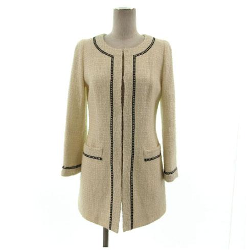 【中古】ジャスグリッティー JUSGLITTY コート ノーカラー ツイード アイボリー ホワイト 白 ブラック 黒 シルバー 1