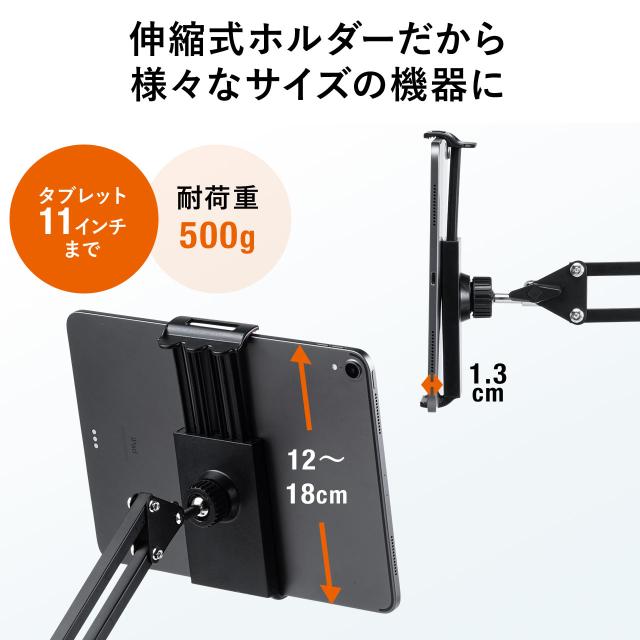 ■対応機種:11インチまでのタブレット(幅120〜180mm、重量約500gまでの機器)