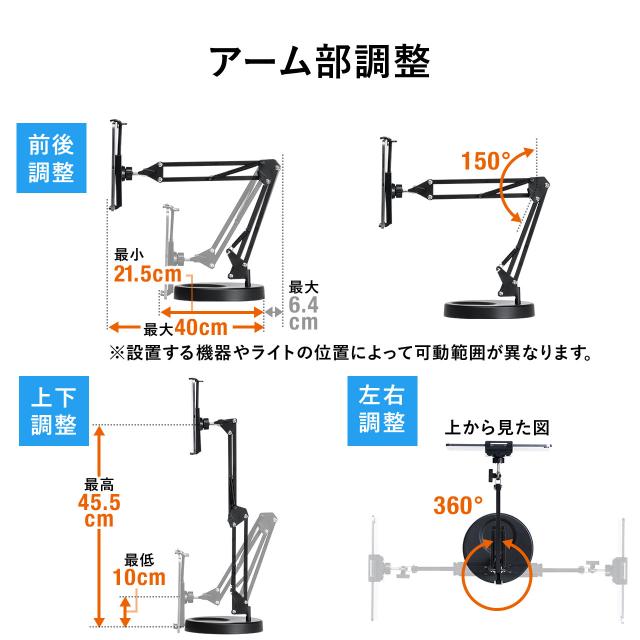 リングライト付き タブレットスタンド 俯瞰撮影 64灯 最大700ルーメン[200-DGCAM026]