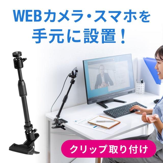 ●高さや向きを調整できるWEBカメラ用スタンドです。●デスクの天板に簡単に装着できるクリップ式です。