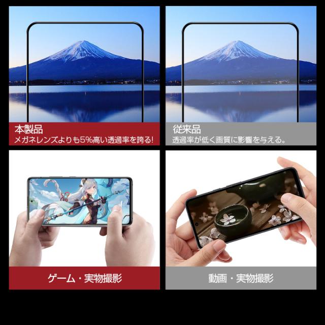 - 今回は本当に残念です。 商品到着に関しては配送業者さんの兼ね合いなので仕方なし。それでもショップさんの発送はいつも通り迅速でした。 商品はきっと品質は問題ないと思います。 ただサイズが。僕自信割れてしまった保護シートの交換のためで、しっかりとサイズ等を確認しなかったのが失敗なのですが。 画面サイズに丁度良い所に、あの黒い縁では本体の折角のベゼルの細さが台無しになります。貼ってみてから違和感を感じ。正確な計測ではないですが。一?ほどサイドが狭くなるのではないかなと。縁なしクリアなら、間違いなく星は高くつけられたと思います。 あまりこう言うことは書きたくないのですが。計測して縁が邪魔と理解して直ぐに廃棄しました。本当に残念です。 後はレンズ側の保護シートも無かったのが残念。これは購入前に確認しなかった僕が悪いのですが。 それでも明誠ショップさんは、値段の割りに悪くないと言うのが僕の印象と期待なので。 今回は「発送はいつも通り迅速」「おそらく品質は悪くない」という意味で星を1つにさせていただきました。 また購入する機会も有るとおもうので。ぜひとも全クリアのシートも発売していただけると。検索にかからなかっただけかな? それでも信頼は0ではないので。今回は縁に色が有るものは気を付けなければいけないと言う勉強だと思って終わります。