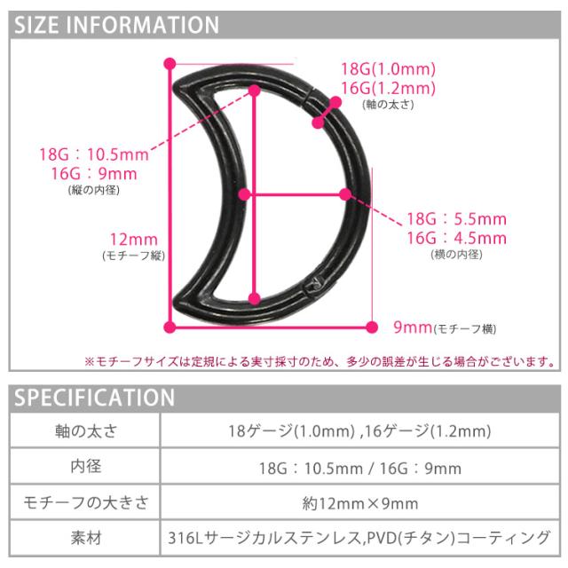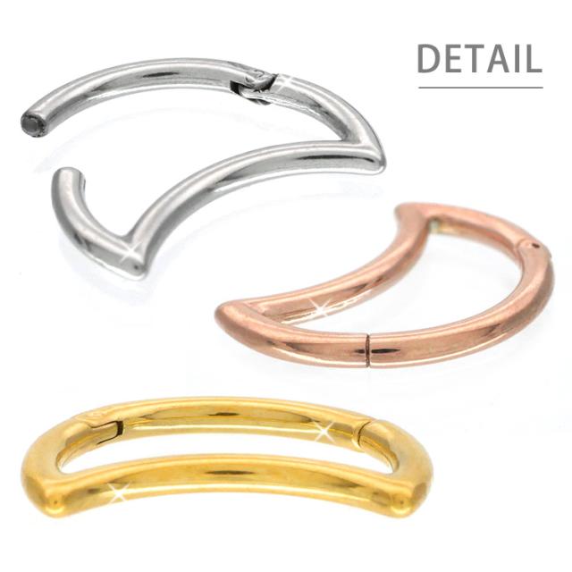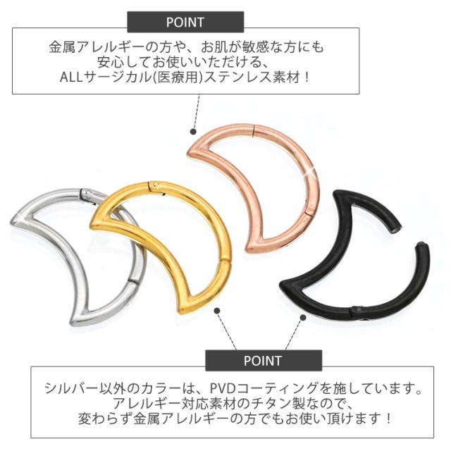 ピアス 軟骨ピアス ボディピアス 18G 16G ワンタッチで装着 三日月モチーフのネオクレッセントセグメントリング 中折れ