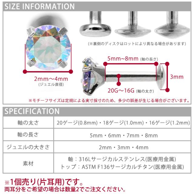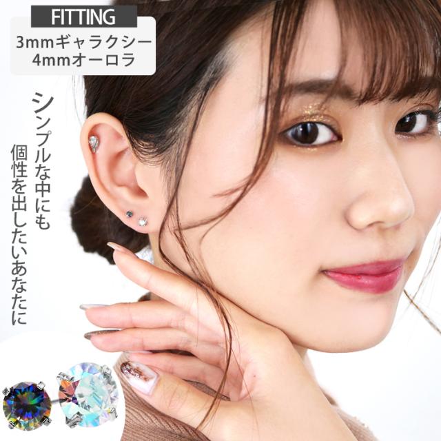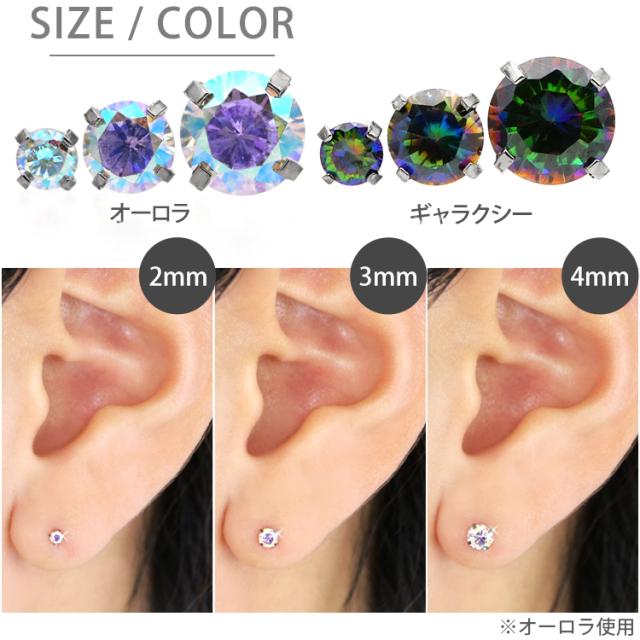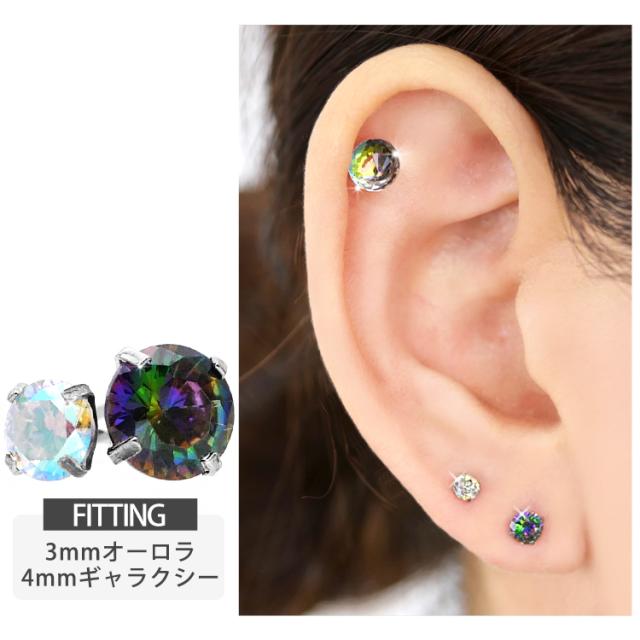 ピアス 軟骨 耳たぶ 20G 18G 16G プッシュピン立爪ジュエルラブレット オーロラ ギャラクシー 片耳用 ファーストピアス セカンドピアス ボディピアス ピアッシングナナ 片耳用