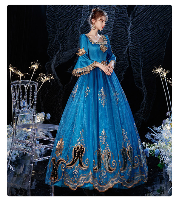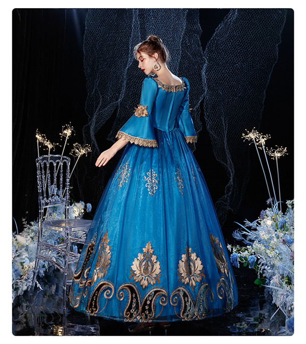 ドレス ヴィクトリアン ロココ調 18世紀 宮廷衣装 王族服 カラードレス 中世貴族風 ドレス ステージ衣装としても最適 お姫様ドレス しりもちドレス 新劇演出 現代劇演出 ヨーロッパ風 結婚式 演出服 パーティードレス サイズ指定 パニエ追加可d9317c0c0s3