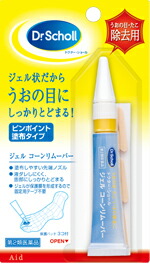 ジェルコーンリムーバーは,サリチル酸の角質軟化作用を利用した医薬品です。ジェルタイプなので液だれしにくく,簡単に患部に塗布できます。患部に塗布ししばらくすると乾燥し白い被膜をつくり,厚く硬くなった皮ふをやわらかくして,うおの目・たこ・いぼを取り去ります。
