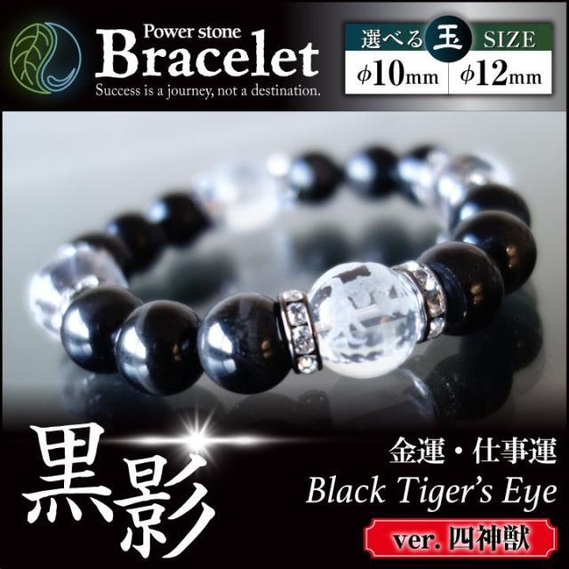 黒影 四神獣 くろかげ KUROKAGE ミニさざれ石付 パワーストーン ブレスレット タイガーアイ ブラック 黒色 開運 幸運 お守り 金運 プレゼント オシャレ
