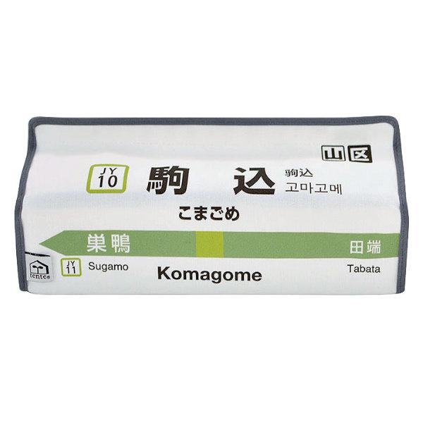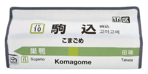 ●駅名標のデザインで、ティッシュカバーの表は内回り、裏は外回りと細部までこだわっています。