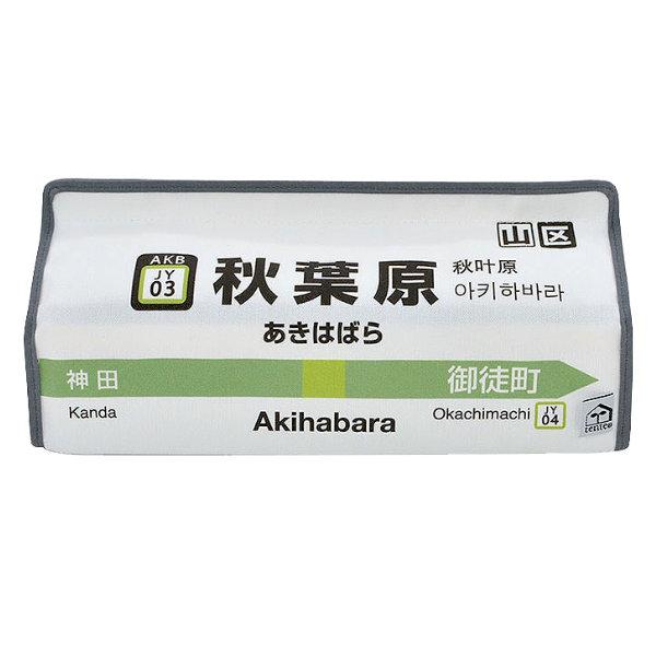 ●駅名標のデザインで、ティッシュカバーの表は内回り、裏は外回りと細部までこだわっています。