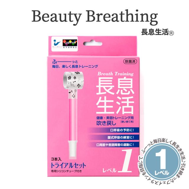 長息生活 Beauty Breathing レベル1 ( 3本入り ) 健康 美容 トレーニング 呼吸 吸気 能力維持訓練 発声能力維持訓練