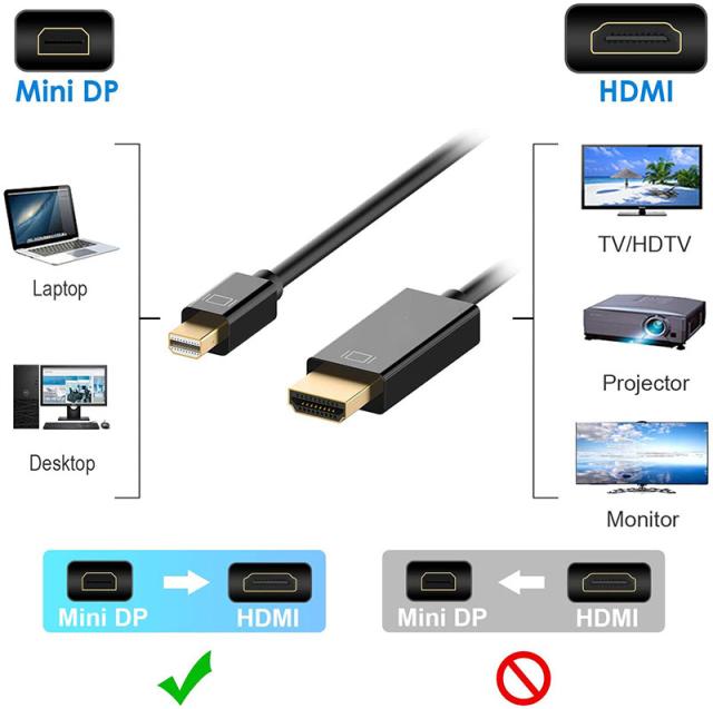 Mini DP to HDMIはミニ ディスプレーポート/サンダーボルト付くのパソコンがHDMIインターフェース付のHDTV、モニター、プロジェクターと接続して、ムービーやゲーム等を楽しめるものです