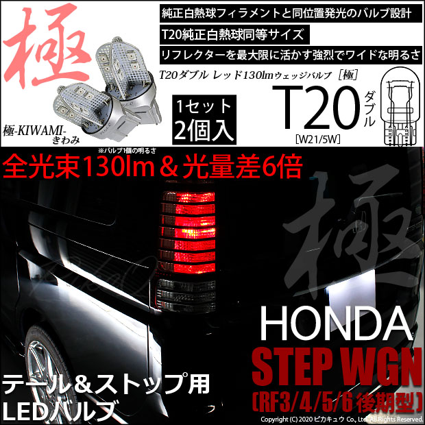 | ピカキュウ,LED専門店,LEDバルブ,国産DC12V車,LED,SMD,T20ダブル,W21/5W,スモール&ストッププ,レッド,全光束130lm,ハイブリッド車対応,極,KIWAMI,きわみ,ホンダ,honda,stepwgn,ステップワゴン,RF系,後期,RF3,RF4,RF5,RF6,後期 |
