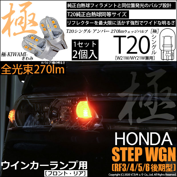 | ピカキュウ,LED専門店,LEDバルブ,国産DC12V車,LED,SMD,T20シングル,W21W/WY21W兼用,ウインカーランプ,アンバー,全光束300lm,全光束270lm,ハイブリッド車対応,極,KIWAMI,きわみ,ホンダ,honda,stepwgn,ステップワゴン,RF系,後期,RF3,RF4,RF5,RF6,後期 |