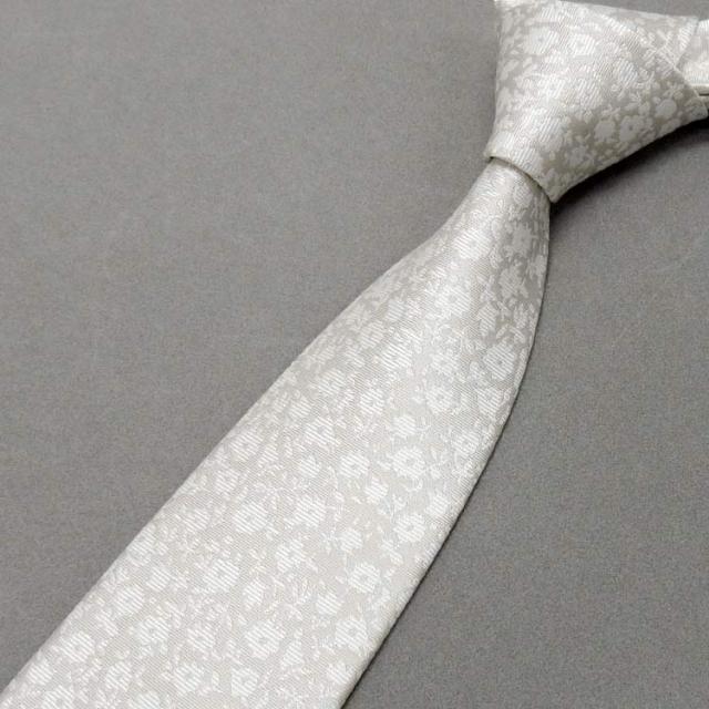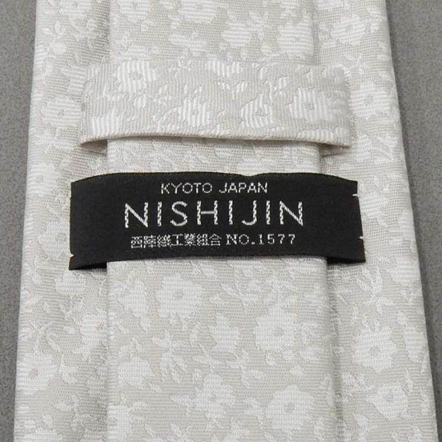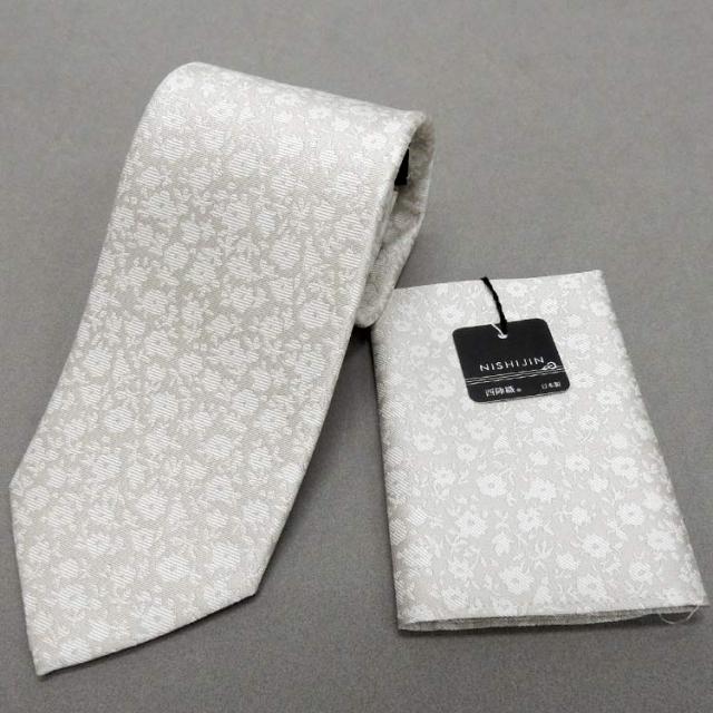 西陣織 フォーマルタイ チーフ付◇白×ベージュ系◇花柄◆シルク100%◇日本製◆礼装◆結婚式・披露宴 ポスト投函便送料無料 njc27-WH