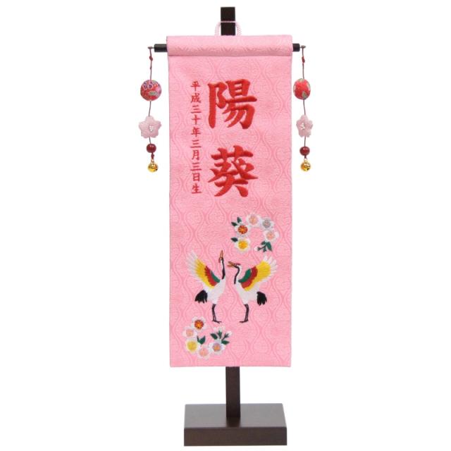 名前旗 名前・生年月日 刺繍名前・生年月日入り 刺繍祝鶴に桜 小 飾り台付き 高さ42cm (152981) 金襴生地 雛人形