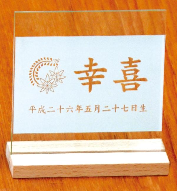 名前入り立札 名前・花個紋・生年月日 花個紋 彫刻木札 白木台 小 彫刻アクリル立札 高さ12cm (600636) 雛人形 五月人形 [メール便発送]配達指定不可[送料無料]