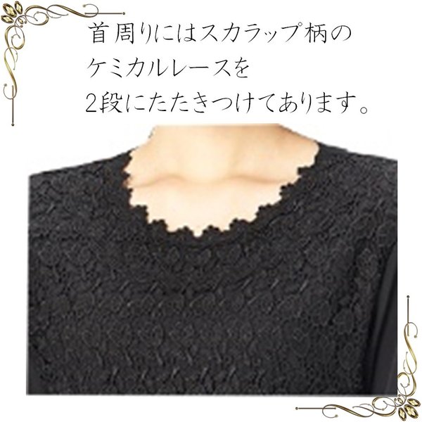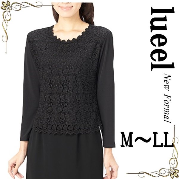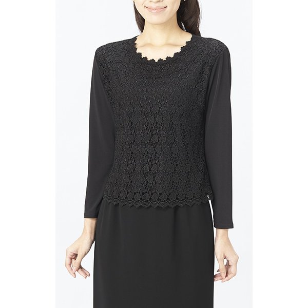 喪服 ブラックフォーマル フォーマル ブラウス セレモニースーツ スーツインナー 前身総レース カットソー Tシャツ 長袖 1801
