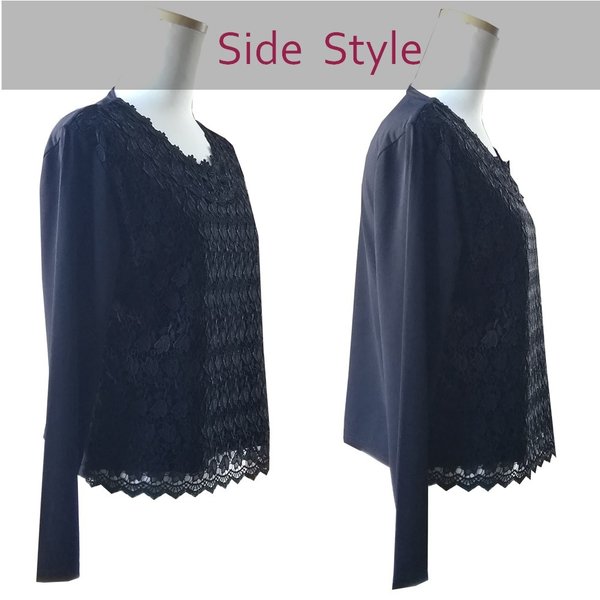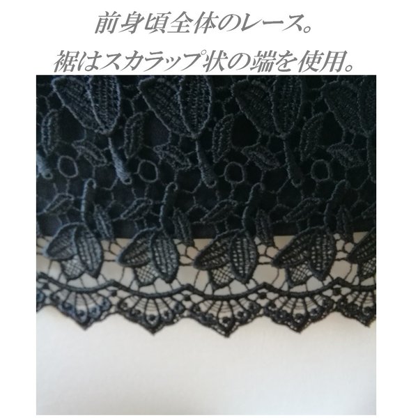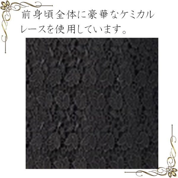 豪華なケミカルレースを前身全体に使い、ゴージャスで品のあるブラウスに