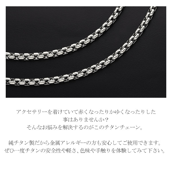 アクセサリーを着けていて赤くなったりかゆくなったりした事はありませんか?そんなお悩みを解決するのがこのチタンチェーン。