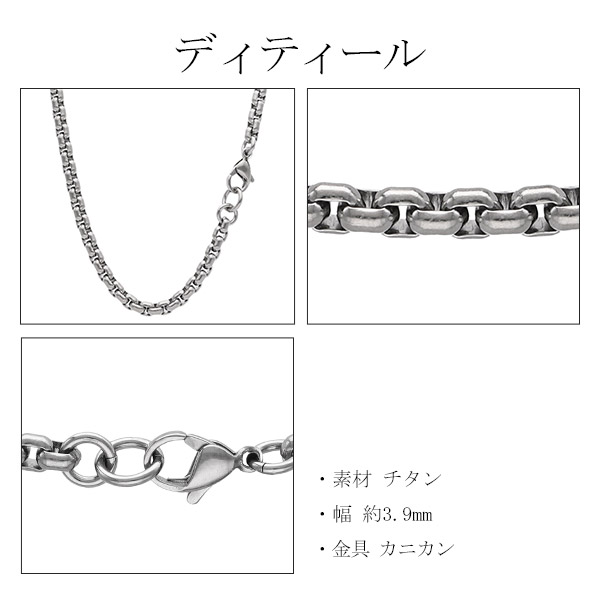 チタンネックレス 角甲丸 幅3.9mm 40cm 日本製 スポーツ 肩こり チタン ネックレス 金属アレルギーフリー チタンネックレスチェーン チェーンのみ
