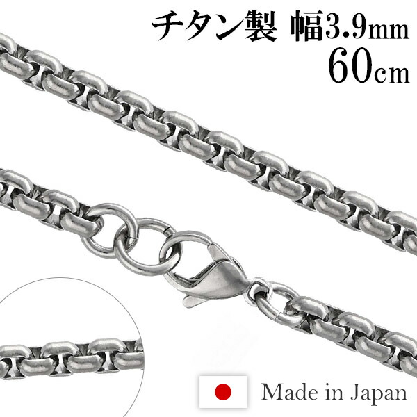 チタンネックレス 角甲丸 幅3.9mm 60cm 日本製 スポーツ 肩こり チタン ネックレス 金属アレルギーフリー チタンネックレスチェーン チェーンのみ
