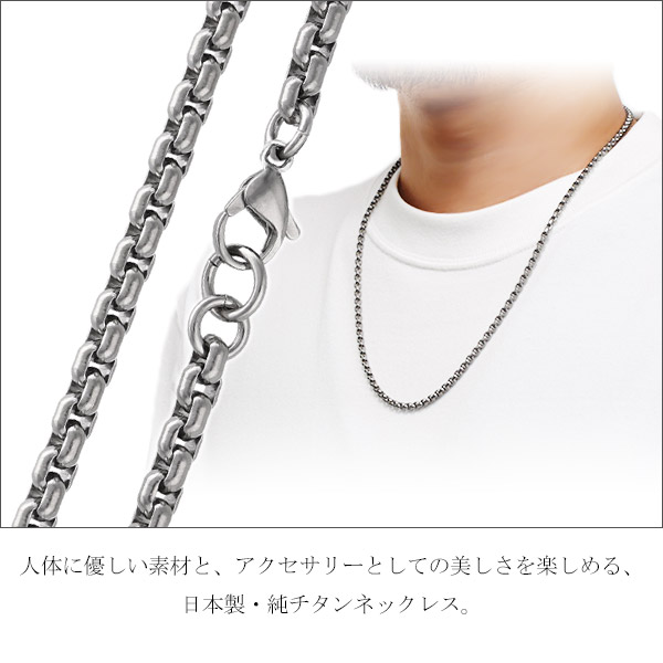 人体に優しい素材と、アクセサリーとしての美しさを楽しめる、日本製・純チタンネックレスです。