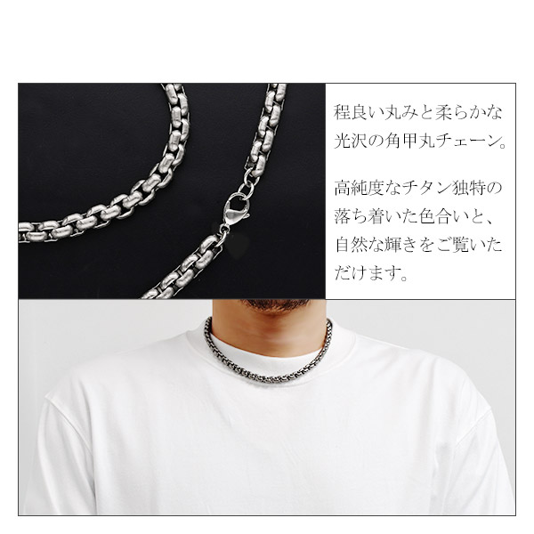 チタンネックレス 角甲丸 幅7.4mm 45cm 日本製 スポーツ 肩こり チタン ネックレス 金属アレルギーフリー チタンネックレスチェーン チェーンのみ