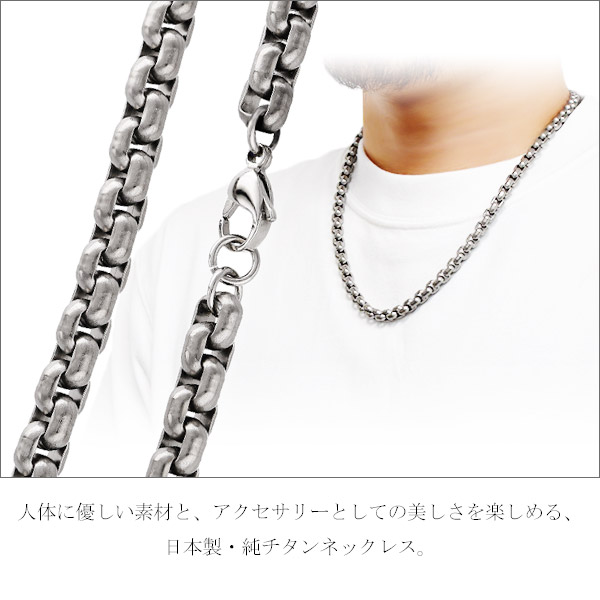 人体に優しい素材と、アクセサリーとしての美しさを楽しめる、日本製・純チタンネックレスです。