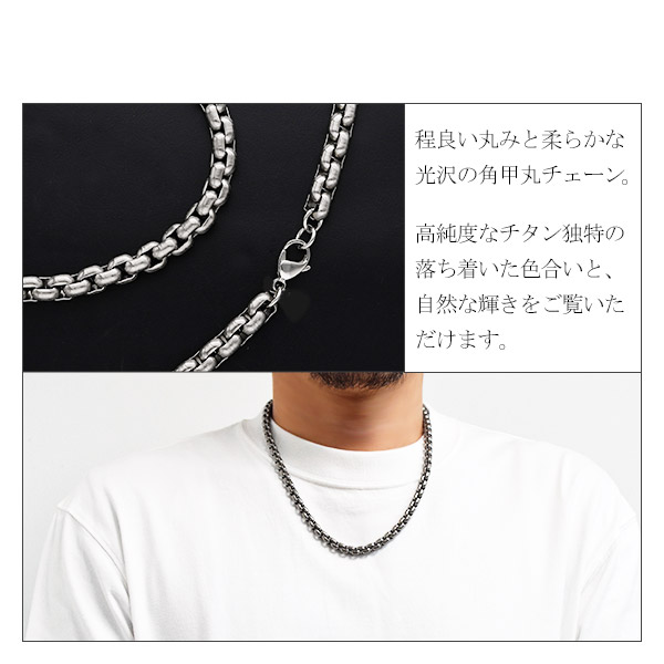チタンネックレス 角甲丸 幅7.4mm 55cm 日本製 スポーツ 肩こり チタン ネックレス 金属アレルギーフリー チタンネックレスチェーン チェーンのみ