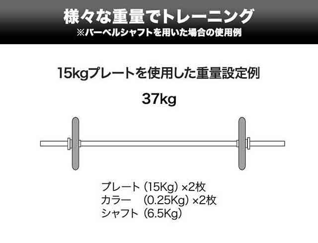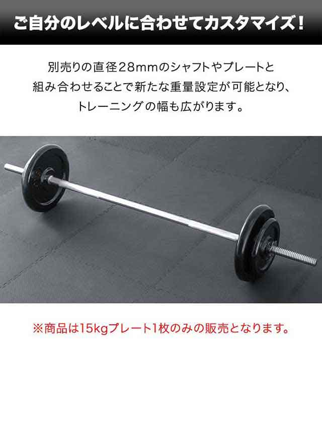 別売りの直径28mmのシャフトやプレートと 組み合わせることで新たな重量設定が可能となり、 トレーニングの幅も広がります。