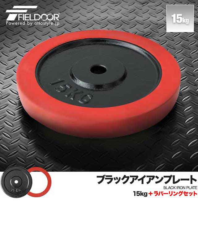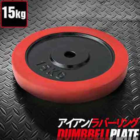 バーベル 用 プレート 15kg 1枚 単品 ブラックアイアン + ラバーリング 付き 追加プレート 追加 ダンベルプレート バーベルシャフト 用 ダンベル ラバーダンベル 筋トレ トレーニング 交換 パーツ オプション 計30kg 送料無料