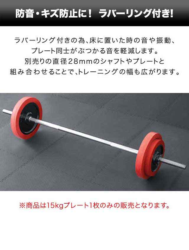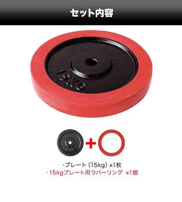 | セット内容: ・15kgプレート×1 ・15kgプレート用ラバーリング×1 |