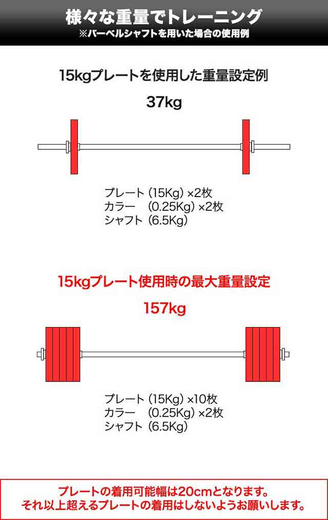 別売りの直径28mmのシャフトやプレートと 組み合わせることで新たな重量設定が可能となり、 トレーニングの幅も広がります。