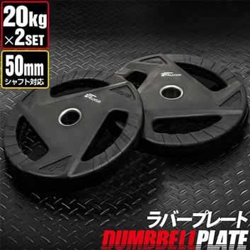 ダンベルプレート 穴あき 20kg 2枚セット 穴径50mm 追加 バーベル用 プレート バーベルプレート ダンベル 筋トレ ホームジム ウエイトトレーニング 重り 交換 追加 パーツ オプション 穴あきプレート グリップ ラバープレート 合計40kg 送料無料