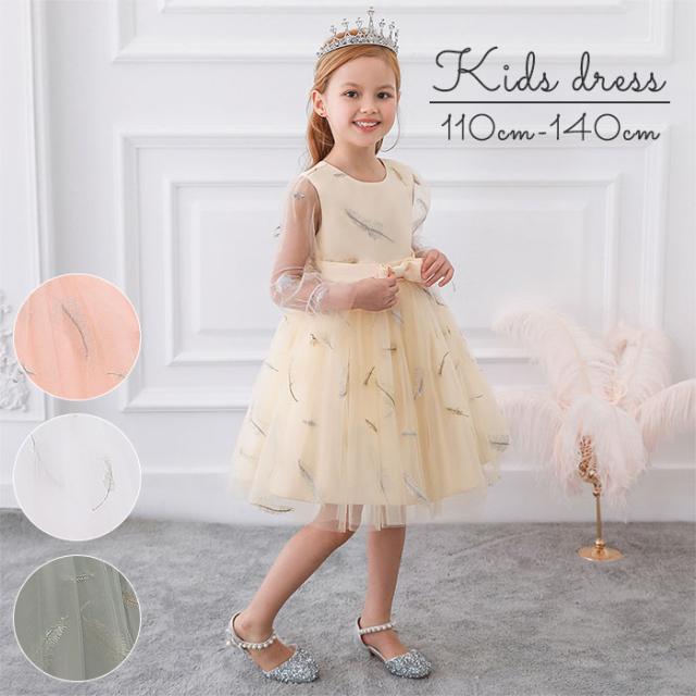 子供 ドレス 長袖 通販 ピアノ 発表会 結婚式 キッズ ワンピース 女の子 おしゃれ かわいい フラワーガール リングガール 袖 シースルー プリンセス 110 120 130 140