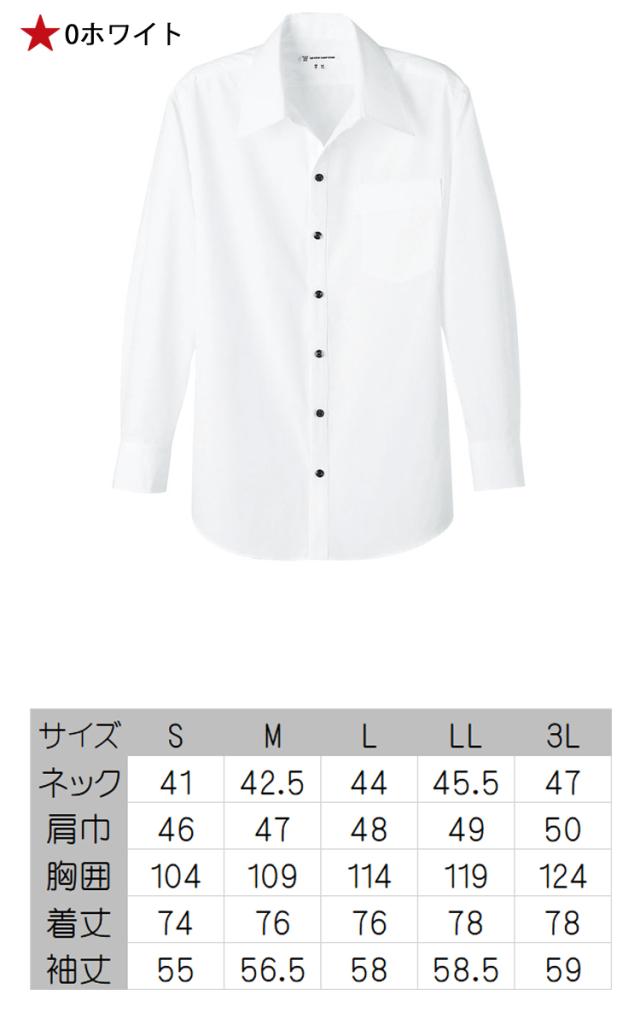 飲食サービス系ユニフォーム セブンユニフォーム メンズ長袖スキッパーカラーシャツ WH7612 男性用 SEVEN UNIFORM 白洋社