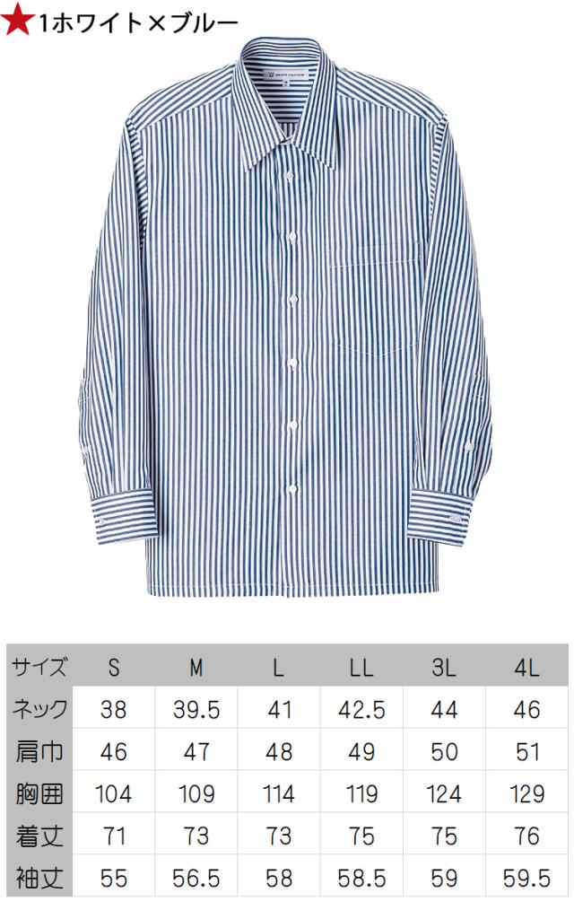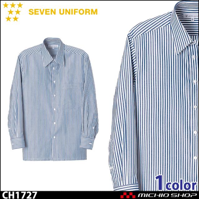 飲食サービス系ユニフォーム セブンユニフォーム メンズ長袖シャツ CH1727 男性用 ストライプ SEVEN UNIFORM 白洋社