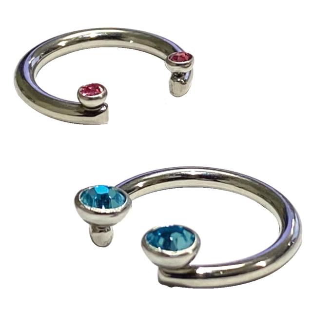 普通のサーキュラーピアスと違い、シャフトに対して正面向きにジュエルが向くので、鼻ピアスのセプタムや、軟骨ピアスのルーク(ロック)やダイス、ニップルピアスにオススメのボディーピアスです。男性からも女性からも人気のチタン製のシャフトは、金属アレルギーを起こしやすいニッケルを含まないニッケルフリーなので、比較的低アレルギーとされ、ファーストピアスやセカンドピアスにも対応できる。
