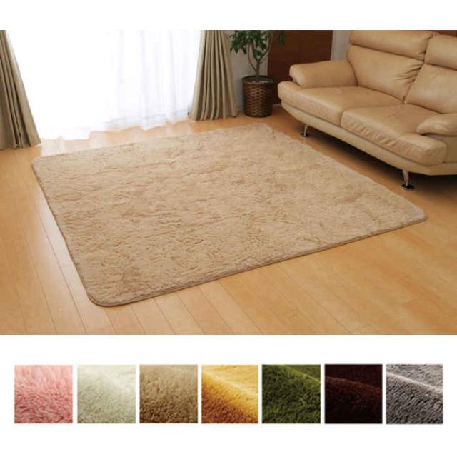 カラーが選べる多色展開です。バリエーションは、ベージュ(JAN:4956642068006/型番:4609529)、ブラウン(JAN:4956642068037/型番:4609579)、アイボリー(JAN:4956642068068/型番:4609629)、ピンク(JAN:4956642137757/型番:4609679)、オリーブ(JAN:4956642540328/型番:3961279)、グレー(JAN:4956642754299/型番:3967829)、オレンジ(JAN:4956642754343/型番:3967879)です。表地にフィラメント糸(極めて長い繊維)を使用しています。遊び毛が出にくく、耐久性に優れています。パイルの長さは約18mmと適度な長さで、しっとりふわふわとしたやさしいタッチ感を出しました。フローリングを傷つけにくいよう、裏には不織布を貼っています。