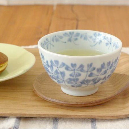 染付けのブルーと敷き詰められた模様が上品な印象の湯呑みは、内側には柄がなくお茶の色がきれいに映り、口が広いので香りと色の両方を楽しませてくれます