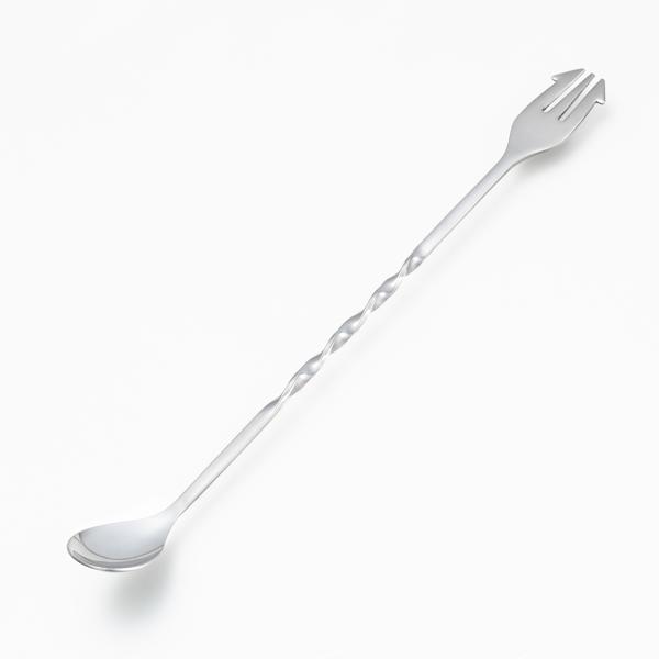 標準より短いタイプのステアスプーン(バースプーン)です。小回りが利いてかき混ぜやすく、フォーク部分で果実を絞ることができます。いつもの家飲み風景をワンランク上に演出してくれます。