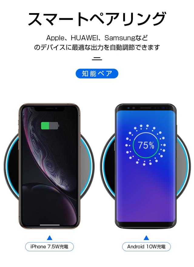 【知能マッチング】知能マッチングテクノロジーにより自動的に接続したデバイスの充電規格を検知でき、最適な電流でデバイスを充電できます。本製品は5W/7.5W/10W/15Wの出力に対応できます。