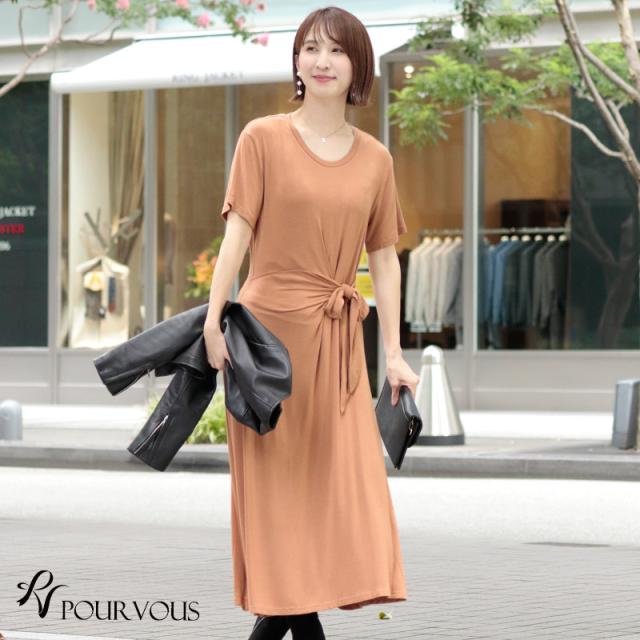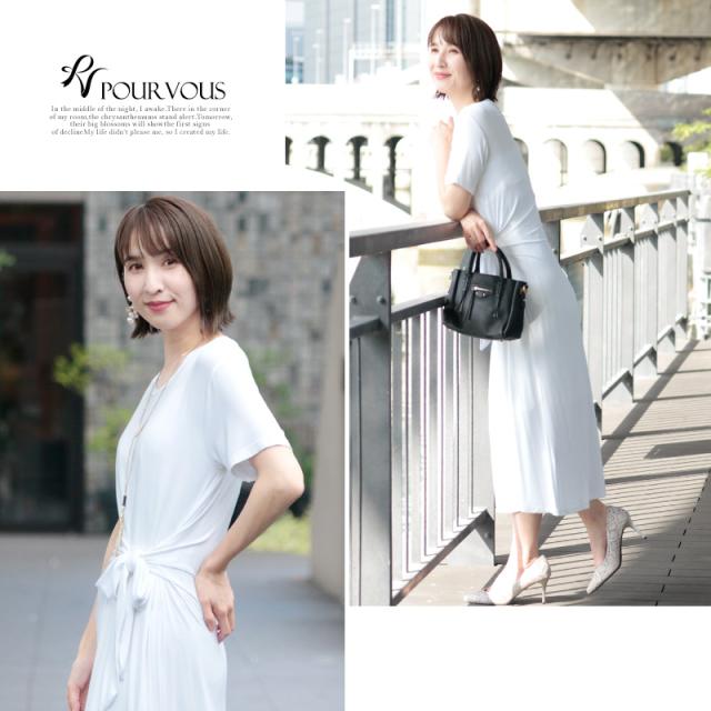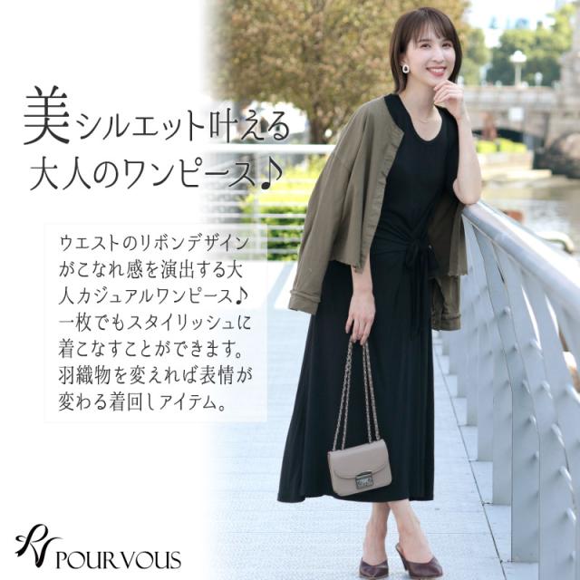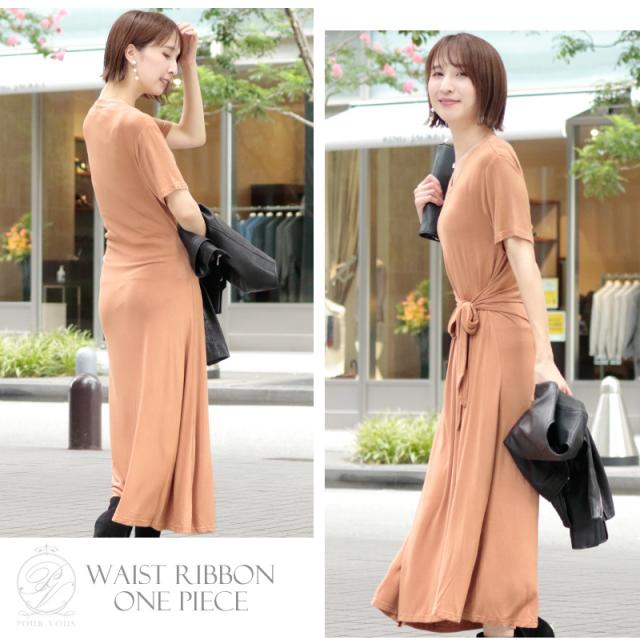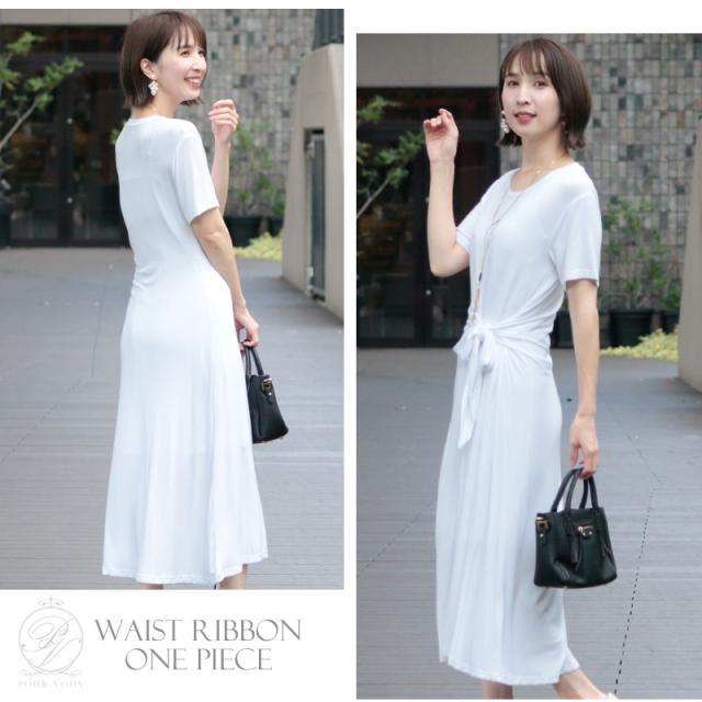 ウエストのリボンデザインがくびれを綺麗に見せ、スタイルアップ叶えてくれるワンピース。