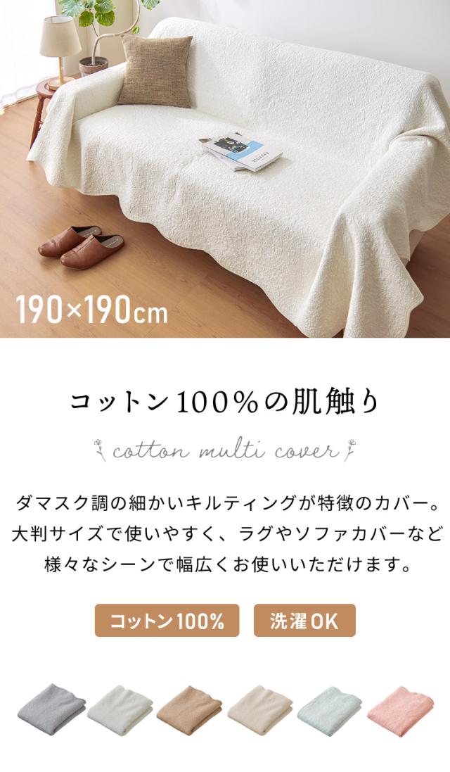 ソファカバー ラグ マルチカバー キルト 190×190cm 正方形 北欧 おしゃれ キルティング 生地 綿100% コットン 中綿入り 洗える スロー 【送料無料】